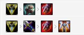 武器是一个各个方面都需要的英雄,所以三项对他来说是最适合不过的第一件装备了,中期有了三项武器的能力就能大幅度增加,同时还带有韧性,触发自己被动也非常快。中期的剩下装备可以选择巨九+鞋子,巨九里面的小提亚马特要尽早出,可以重置普攻。后期的装备可以从防御入手,振奋+兰顿,最后一个选择刚进入游戏不久的关公刀,让武器打出来更高的伤害。