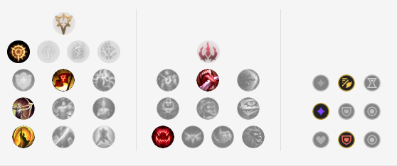 副系符文:主宰+血之滋味+贪欲猎手,主宰的存在可以让凯南短时间内打出来高爆发的伤害,血之滋味给与凯南适当的治疗效果,